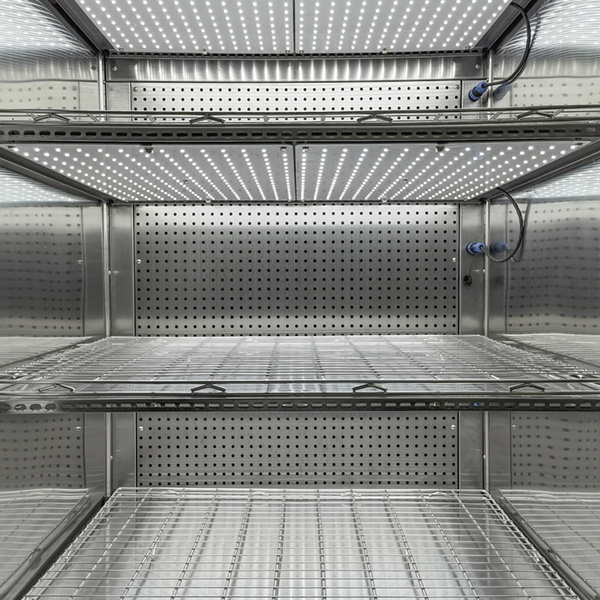 3、 采用镜面不锈钢内胆,四角半圆弧型过渡,隔板支架可以自由装卸,便于箱内清洗工作。